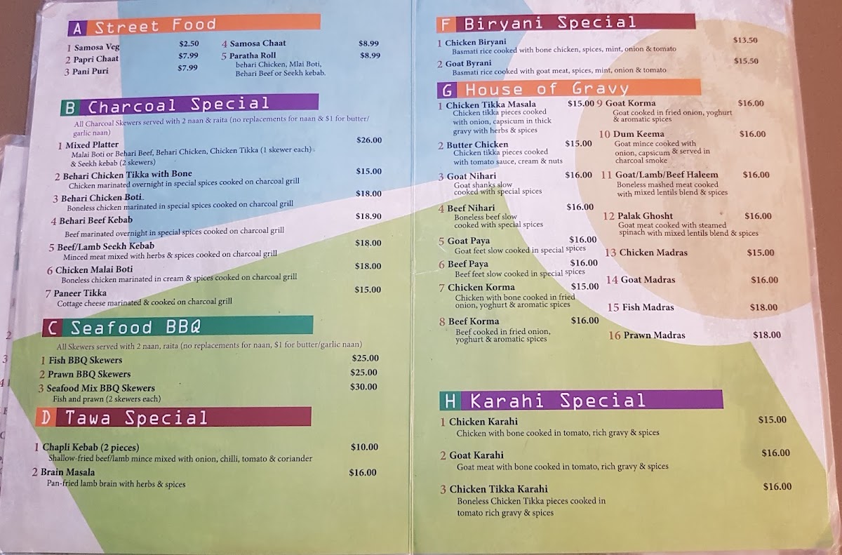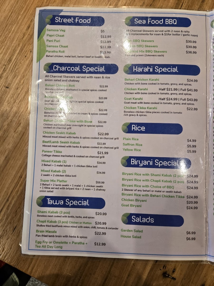 2 Behari, 2 lamb seekh, 1 malai, 1 chicken seekh, 1 tikka served with briyani rice, 2 naan, 1 chutney, and onion salad.