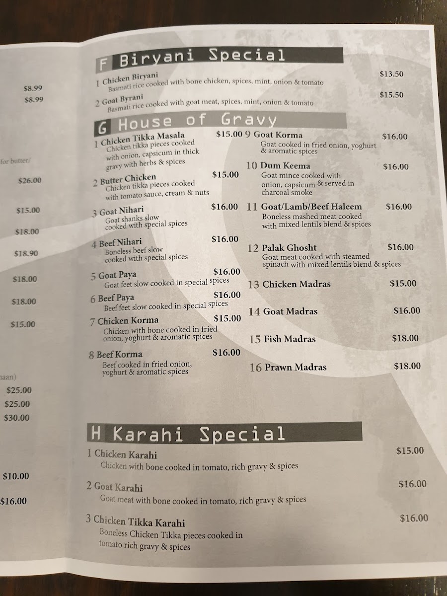 Basmati rice cooked with goat meat, spices, mint, onion and tomato.